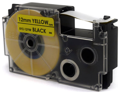 Taśma JetWorld Zamiennik Casio Czarny na Żółtym 12mm x 8m (PT-12YW1, PT12YW1, XR-12YW1, XR12YW1) [JWT-C12YWN]
