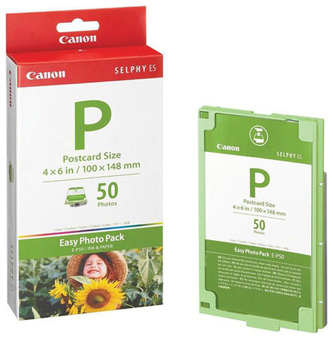 Wyprzedaż Oryginał Papier termosublimacyjny i taśma barwiąca Canon E-P50 1247B001AA do Canon Selphy ES1 ES2 ES20 | 100x148mm (pocztówka - 4x6'') | 50 szt. [1247B001AA_wyp]